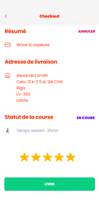 Le client reçoit des notifications à chaque étape importante et peut contacter directement le livreur si nécessaire.